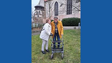 Bereits seit 10 Jahren pflegt und versorgt Margret Koltonowski ihren Ehemann, der an einer demenziellen Veränderung leidet. Nach Möglichkeit nimmt sie ihn überall mit hin.